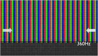 传统液晶驱动是从左到右单向进行,,在画面更新速度愈来越愈快的情况下,,,,位于驱动线路末端的右下角区域,,,,画素的闸极来不及在短时间内获得足够电压,,无法显示出正确的颜色资讯。。。。 |